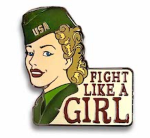 What does it mean today to "Fight Like a Girl" ? Young women today are empowered and fierce, and they have put to rest the old phrase that had negative connotations. Young women know how to stand up for themselves to demand fair and equal treatment....and to serve besides their brothers in arms. Here is a wonderful message on an enamel pin for our female service members or female Veterans who have served and sacrificed for their Country and know what it means to "fight like a girl" in the U.S. Armed Services. This enamel pin would also make a great gift for a young girl to inspire her to serve her Country....or just to remind her that she has it within herself to be strong and stand up and fight for what she believes in.
