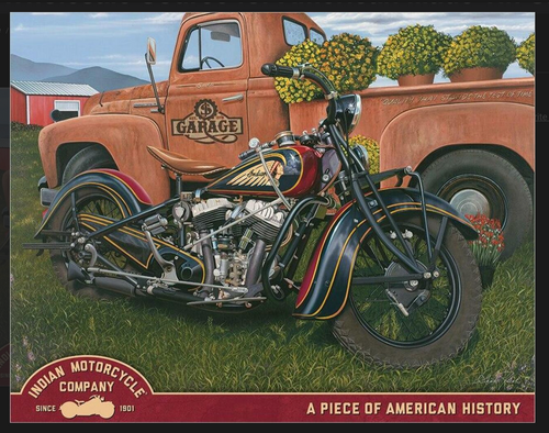 Summertime and the livin' is easy....and this vintage truck and motorcycle take you right back to a summer day from decades past. A great piece of art work for those who are fans of vintage trucks and old time motorcycles. This metal wall art would look great in your favorite room, shop, office, or garage. The USA-made metal sign measures 12.5" by 16".